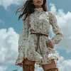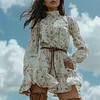 Women's Retro Floral Bohemian Pastoral Style Long-sleeved Mini Short Dress