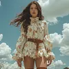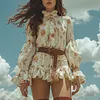 Women's Retro Floral Bohemian Pastoral Style Long-sleeved Mini Short Dress