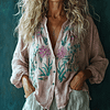 Women's Linen Bohemia Style Plain Long-sleeved Breathable Top Shirt