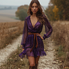 Women's Retro Pastoral Leopard Style Long-sleeve Short Skirt Dress